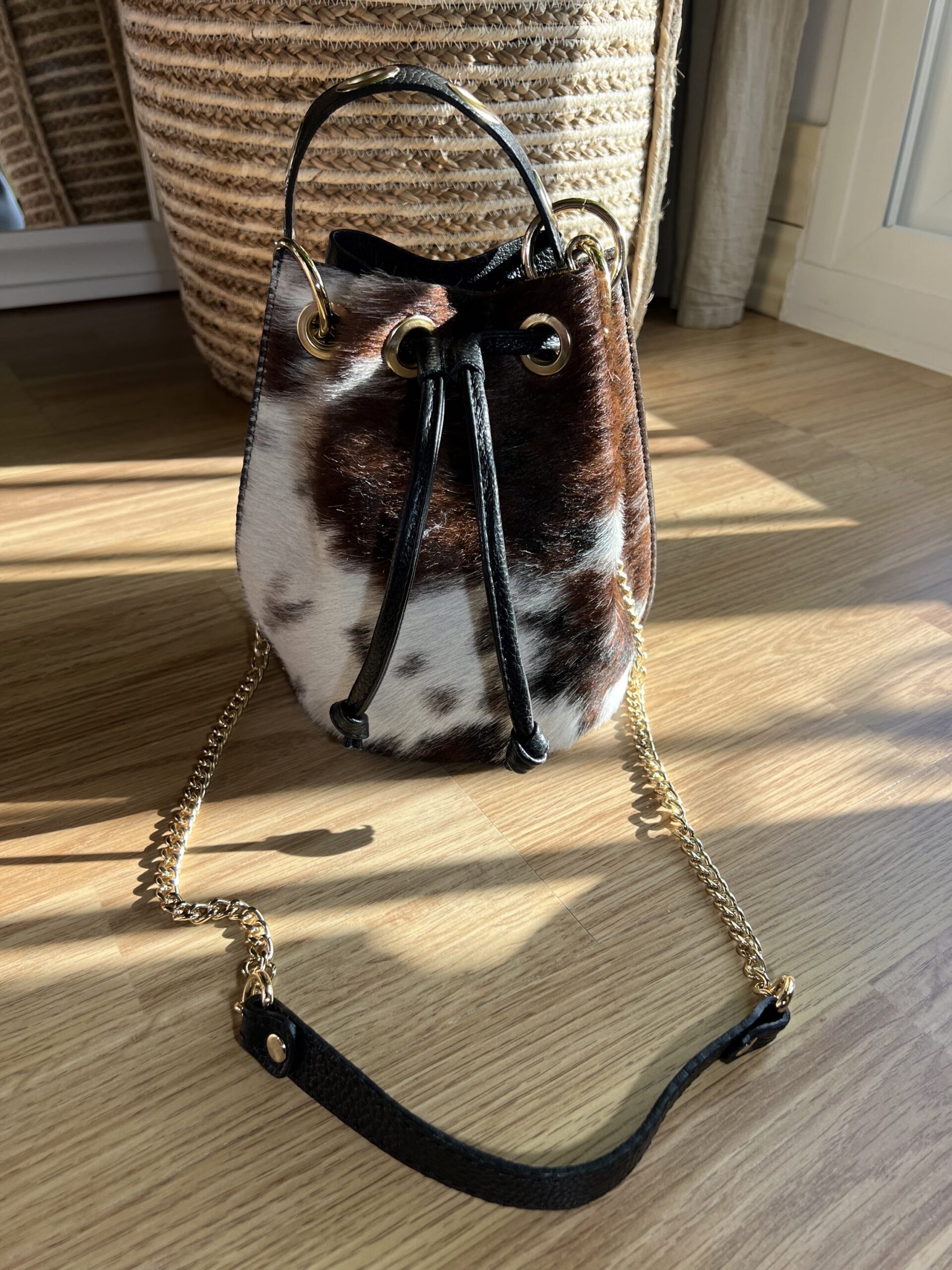 Con asa para llevar en la mano y otra asa extraíble para llevar cruzada.