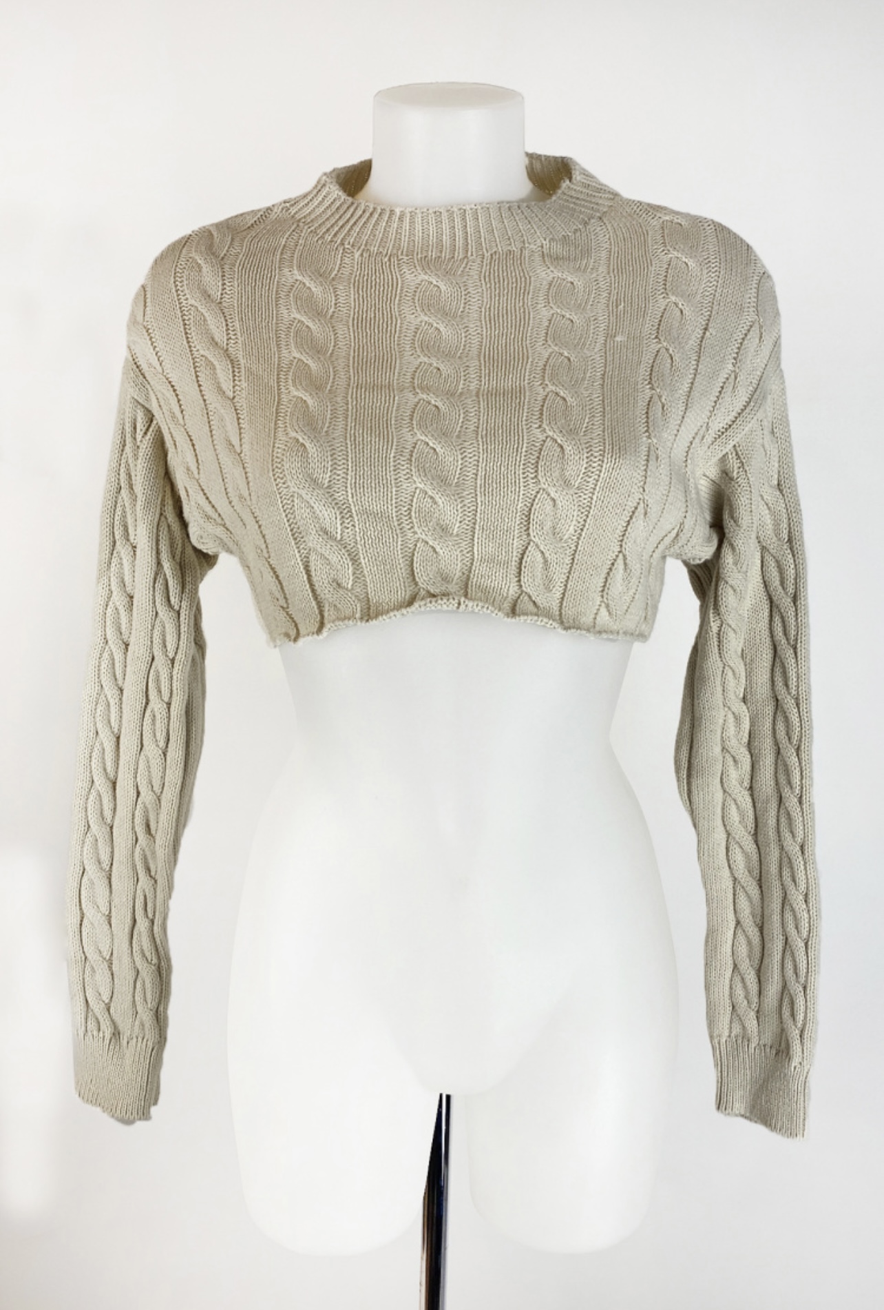 Jersey cropped manga larga de punto, cuello redondo y elástico.